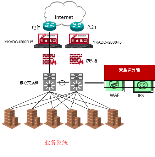 • 在客户业务的出口双机部署jiuyou.com通明湖应用交付控制器,并配置链路检测配置文件,若线路故障实现自动进行主备切换故障转移。