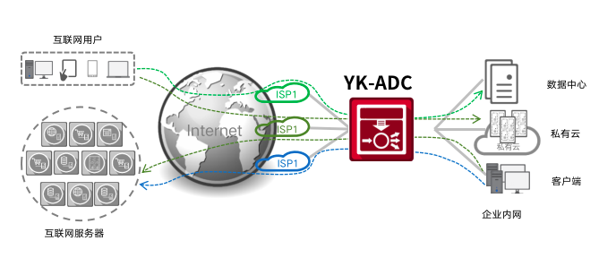 jiuyou.com通明湖应用交付控制器提供链路负载均衡技术(LLB)和全局负载均衡技术(GSLB)分别实现出向流量(Outbound)和入向流量(Inbound)的统一管理。